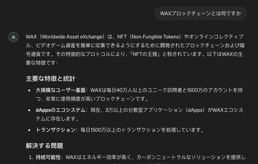 This week, OpenAI announced the release of the new GPT-4o model and launched the custom GPT Store for free to all users. In anticipation of the launch of the custom GPT store, the EOS Authority team has been working with the paid version of the GPT Store over the last few months to develop a custom GPT for the WAX blockchain.